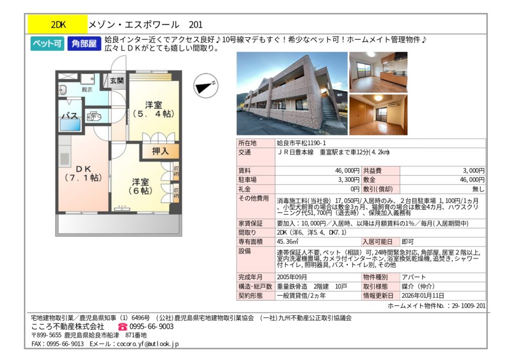 | 所在地 | 鹿児島県姶良市 平松1190-1 メゾンエスポワール |