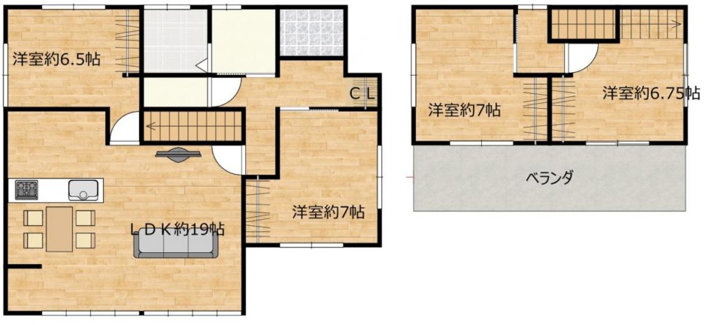 洋室6畳 1階 洋室7畳 1階 LDK19畳 1階 洋室7畳 2階 洋室6.75畳 2階 |