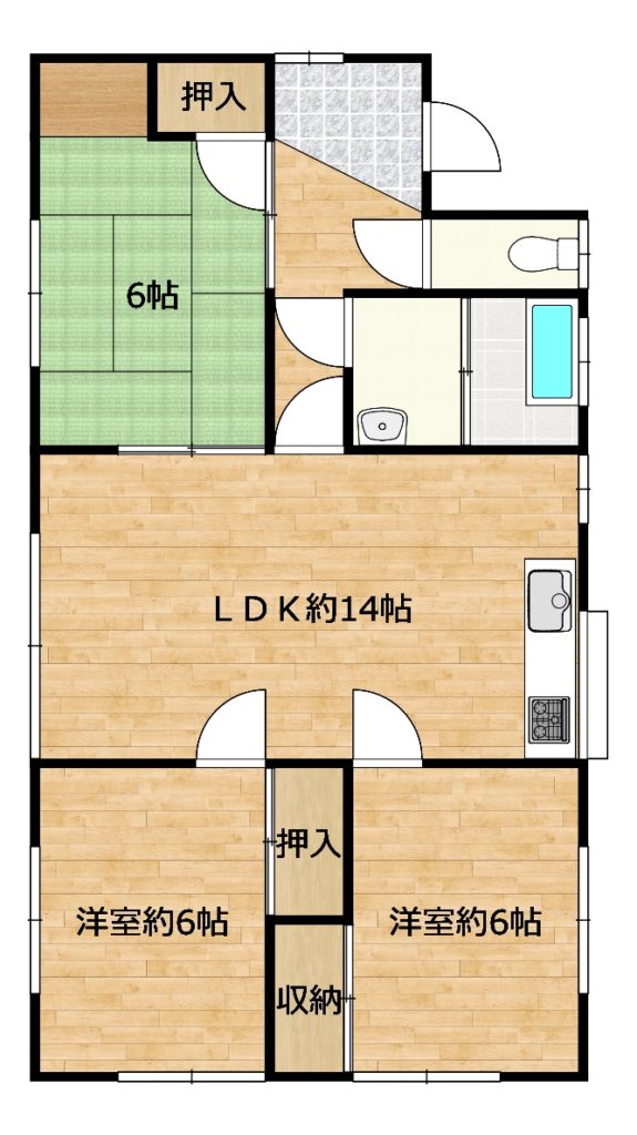 和室6畳 洋室6畳 洋室6畳 LDK14畳 |